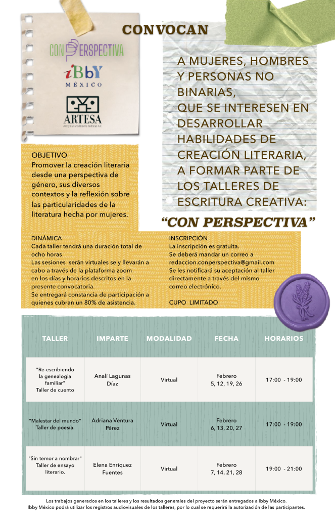 Consulta los detalles en nuestra convocatoria y envíanos un mensaje solicitando tu inscripción al correo electrónico redaccion.conperspectiva@gmail.com, comenzamos este 05 de febrero.